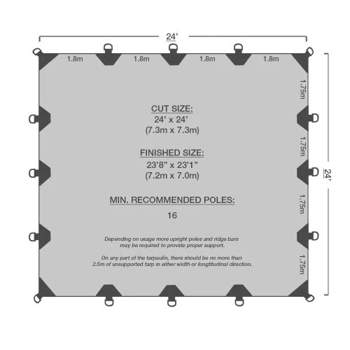 Cut Size: 24′ x 24′ (7.3m x 7.3m)